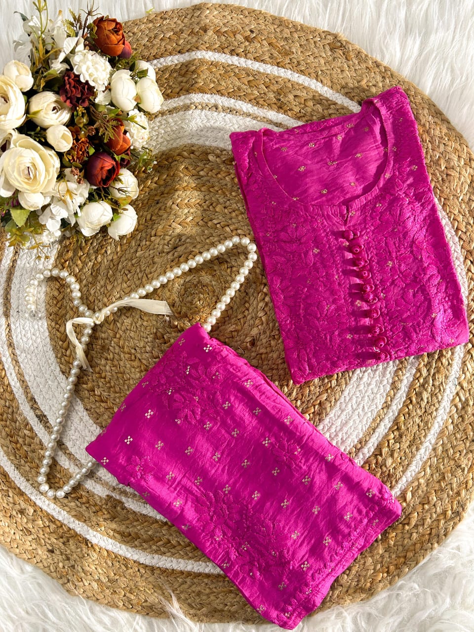 Cotton chanderi kurta palazzo set
