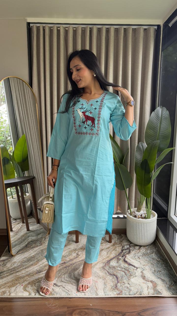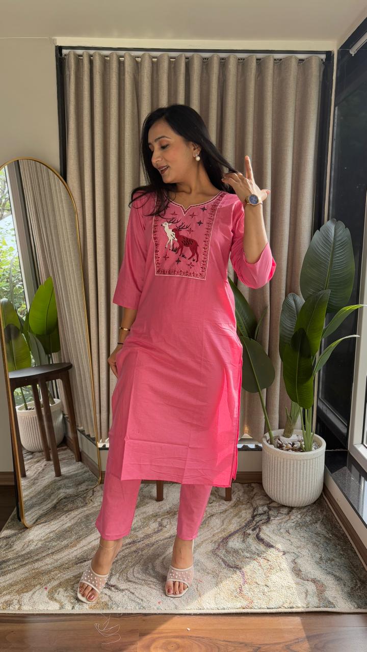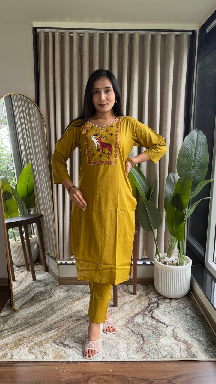 pure jaipuri cotton kurti with pant sets