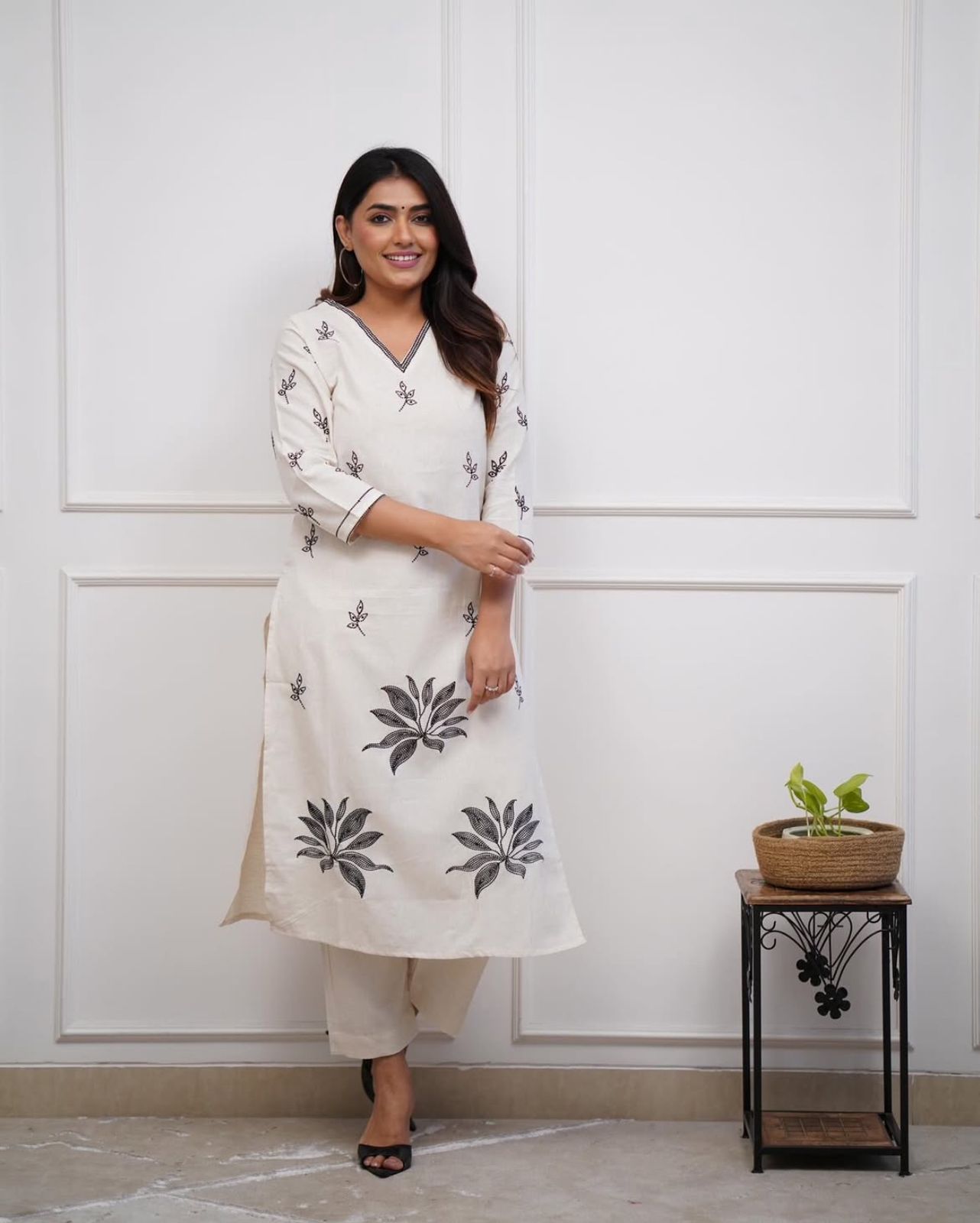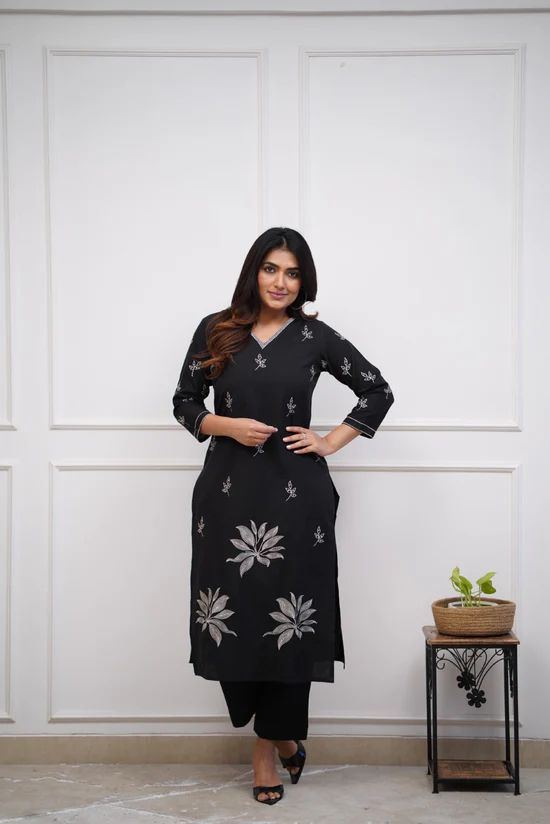 pure cotton kurti with embroidery work on top with coordinated pant