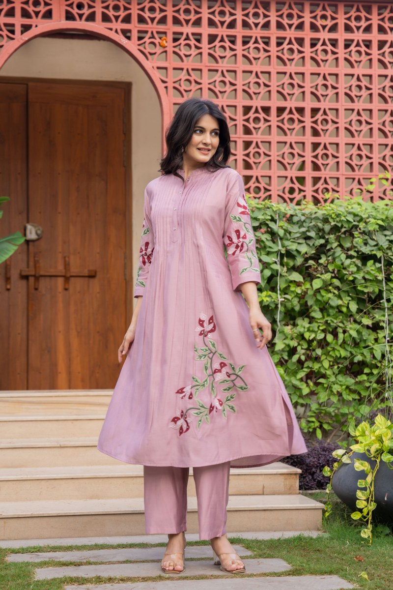 Beautiful pure cotton fabric pleated pattern kurta with heavy embroidery panel work and sequence work &pintex work kurti paired with pant